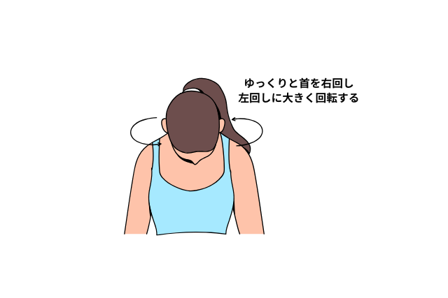 2.ゆっくりと首を右回し、左回しに大きく回転する