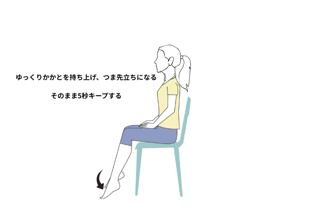この動作を左右10回ずつ繰り返しましょう。また、かかとの上げ下げはゆっくりと行うことがポイントです。