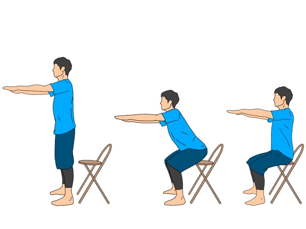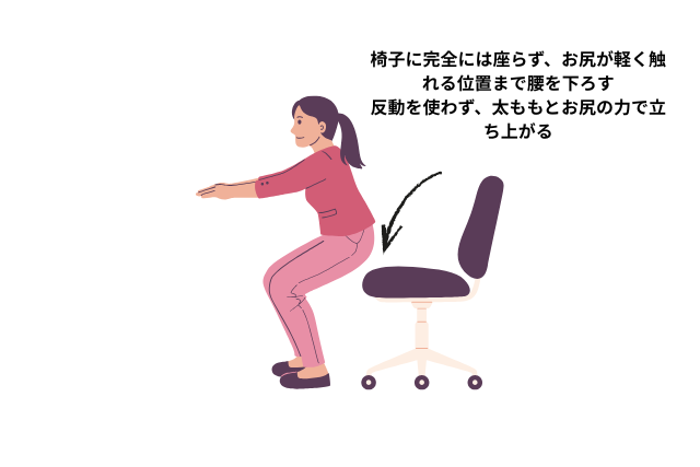 椅子に軽く触れる位置で止めるスクワット