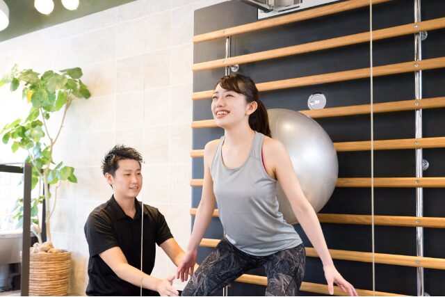 ただし、座りながらスクワットは、自分で隙間時間を見つけ継続的に行う必要があります。そのため、継続できない方や効果を感じられずにモチベーションが上がらず、悩んでしまいがちです。そんな方には、マンツーマンでトレーニングを受けられるパーソナルジムがおすすめです。パーソナルジムでは、一人ひとりの悩みに合わせてトレーニングメニューを提案してくれるため、無理なく運動を続けられます。そのため、自分に合った方法で確実に下半身を鍛えたい方は、パーソナルジムの活用がおすすめです。