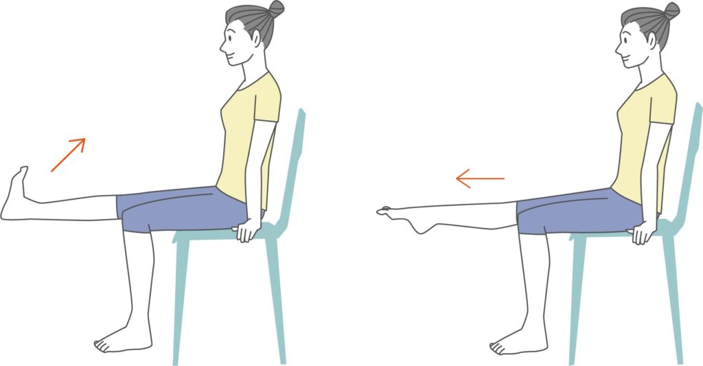 下半身リズム運動は、座ったまま足を上下に動かし、下半身の血流を促すエクササイズです。手順は、以下のとおりです。